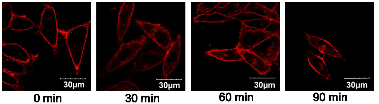 Mem610-F染色 MCF-7細(xì)胞 (人乳腺癌細(xì)胞 人乳腺癌細(xì)胞 )后初始及90 min后細(xì)胞膜成像